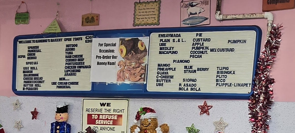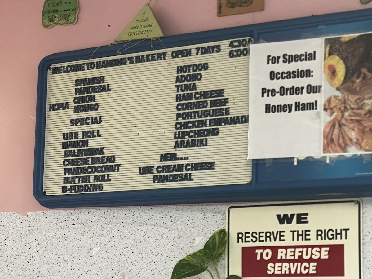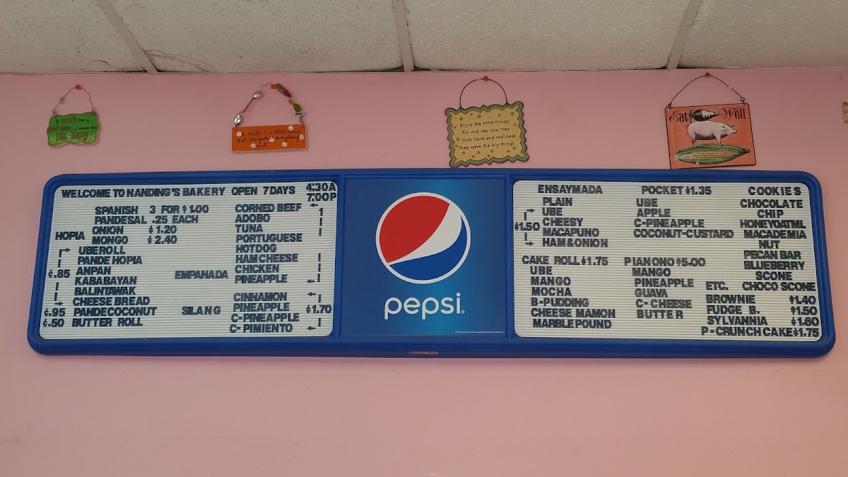 Nanding's Bakery offers a menu that feels both familiar and comforting, centered around classic bakery treats and local favorites. The selection is straightforward, perfect for grabbing a warm Spanish roll or a sweet Ensaymada to enjoy with morning coffee or an afternoon break.
